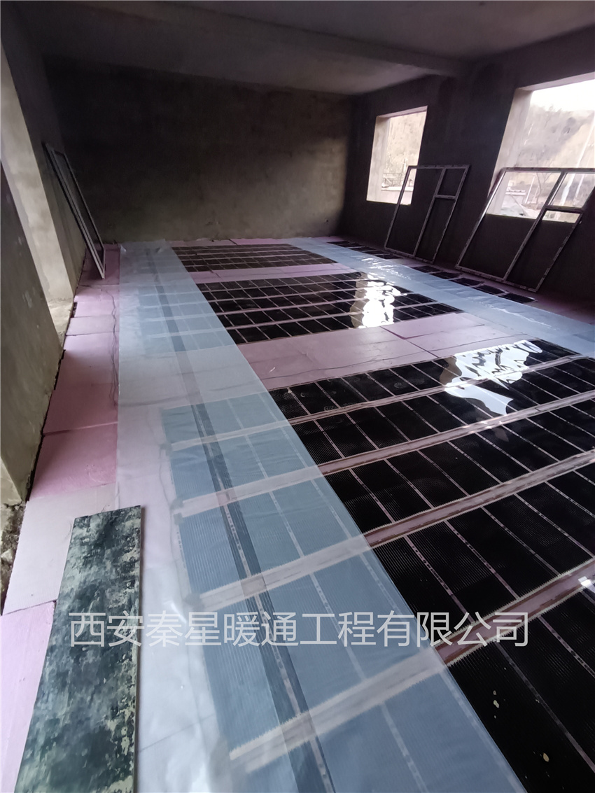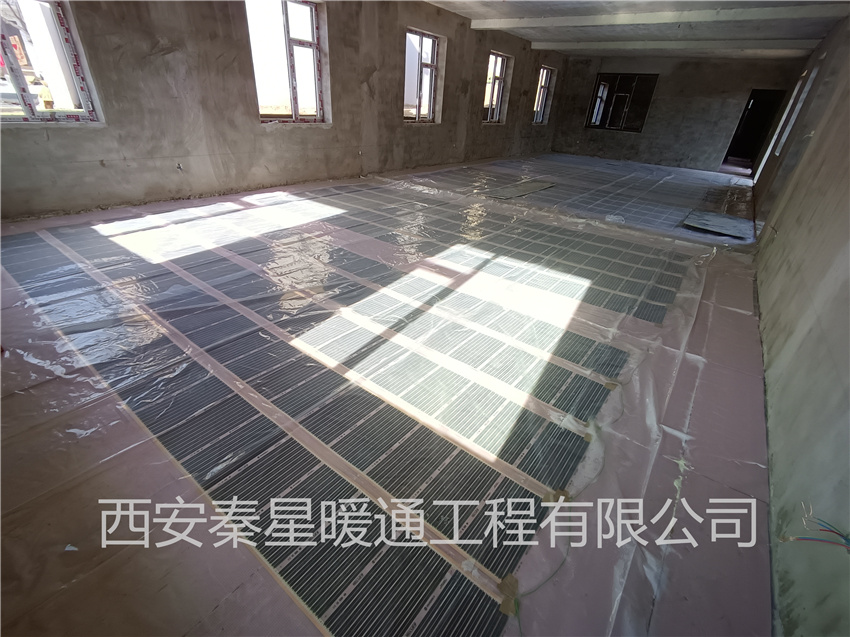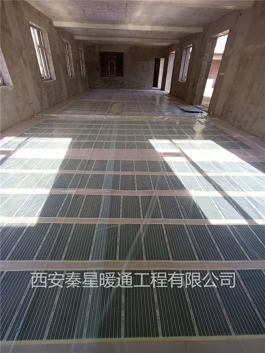 本工程為辦公用房電地暖安裝,電地暖安裝面積約為1200㎡,采用石墨烯電熱膜進行鋪設,電熱膜電地暖有安裝速度快、使用方便、升溫快等特點,可分室分時控制,特別適合廠房、辦公