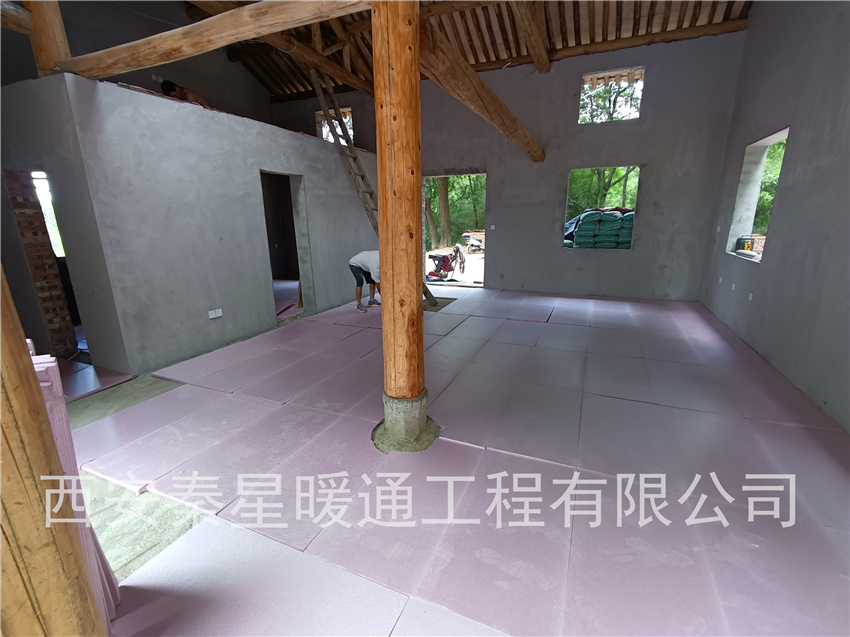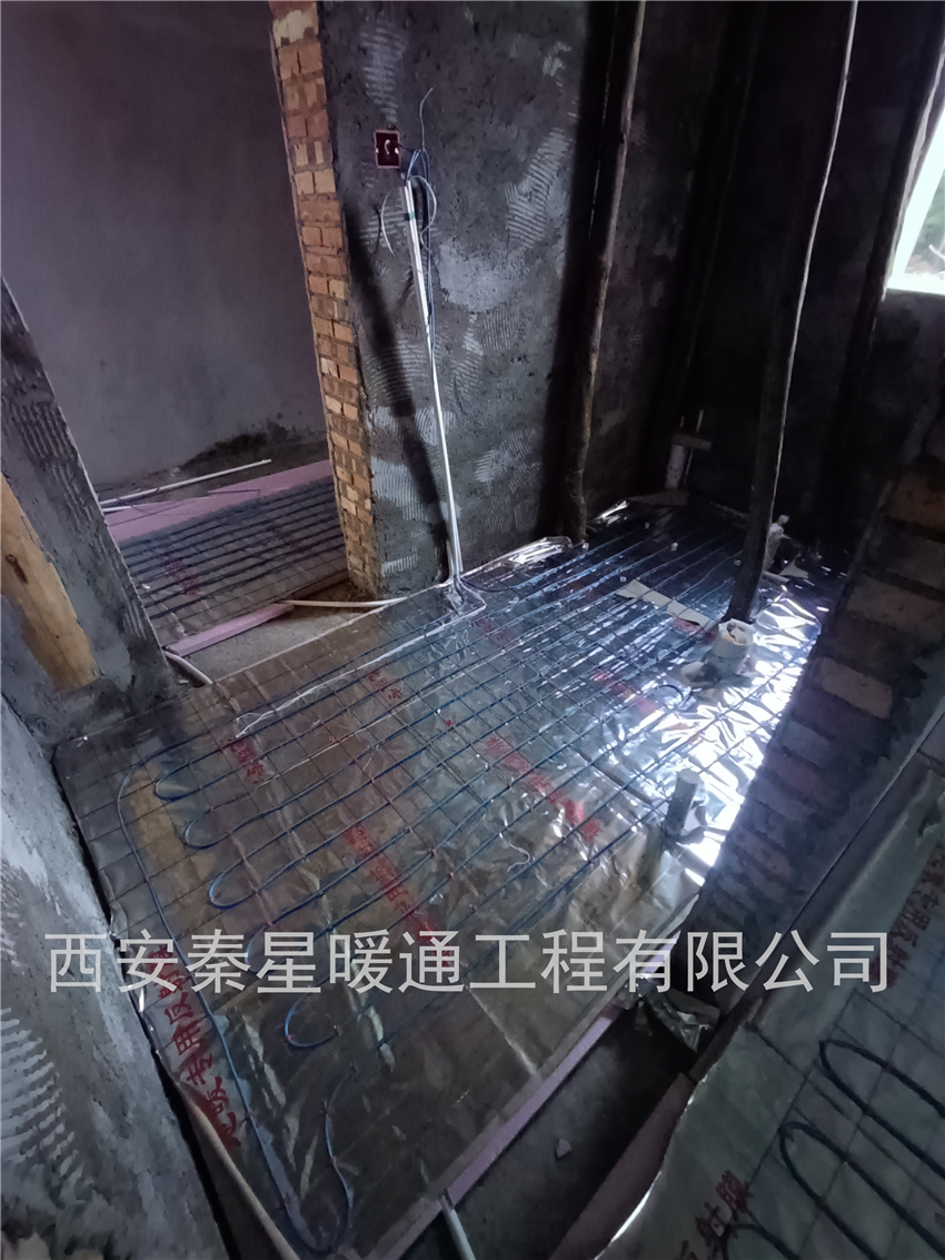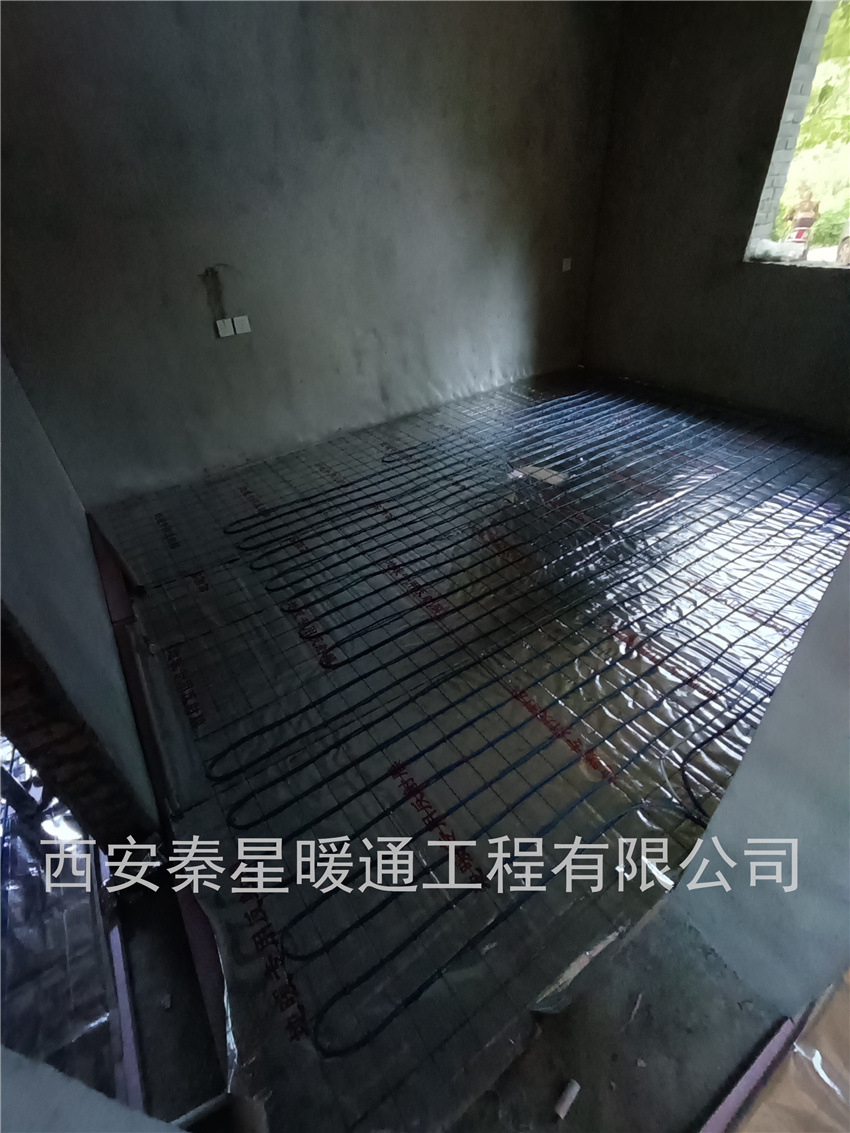 本工程為西安市周至自建住房電地暖安裝,電地暖安裝面積約為180㎡,采用合金絲發熱電纜進行鋪設,電地暖是將允許上限65℃的發熱電纜鋪設在地面結構以上,通電發熱將熱量通過地面