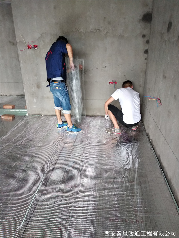 2、鋪設(shè)地暖反射膜,接頭處采用搭接方式,保證滿鋪;