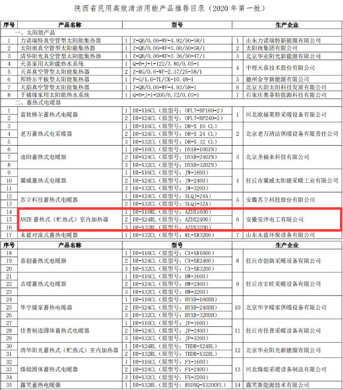 根據(jù)陜西省發(fā)展改革委《關(guān)于做好陜西省民用高效清潔用能產(chǎn)品推廣工作的通知》(陜發(fā)改環(huán)資函〔2020〕248號(hào)),陜西省太陽能行業(yè)協(xié)會(huì)清潔取暖專業(yè)委員會(huì)組織征集了一批太陽能、蓄熱式電暖器、生物質(zhì)爐具、潔凈煤爐具產(chǎn)品,對(duì)申報(bào)企業(yè)基本信息、資質(zhì)、誠信情況和申報(bào)產(chǎn)品檢測(cè)報(bào)告、生產(chǎn)標(biāo)準(zhǔn)、技術(shù)參數(shù)審核后,遴選出《陜西省民用高效清潔用能產(chǎn)品推薦目錄(2020年第一批)》,現(xiàn)予以公示。